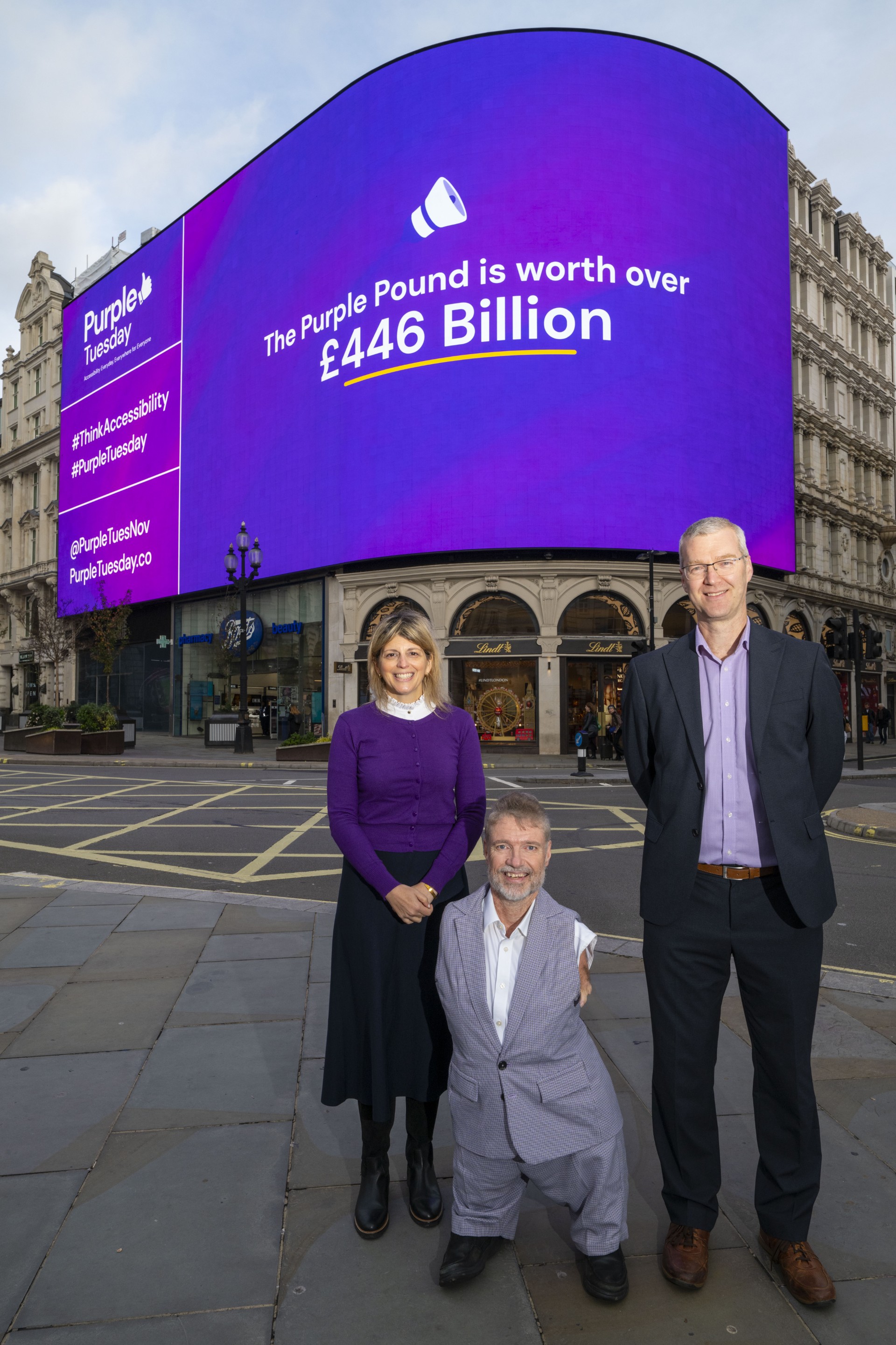 To mark the ‘mauve’ moment on behalf of Boots and No7 Beauty Company, Jamie Kerruish, Chief Healthcare Officer and Executive Sponsor of the Boots Group DisAbility Alliance Business Resource Group (BRG), headed to Piccadilly Circus to take part in Purple’s annual light switch on.